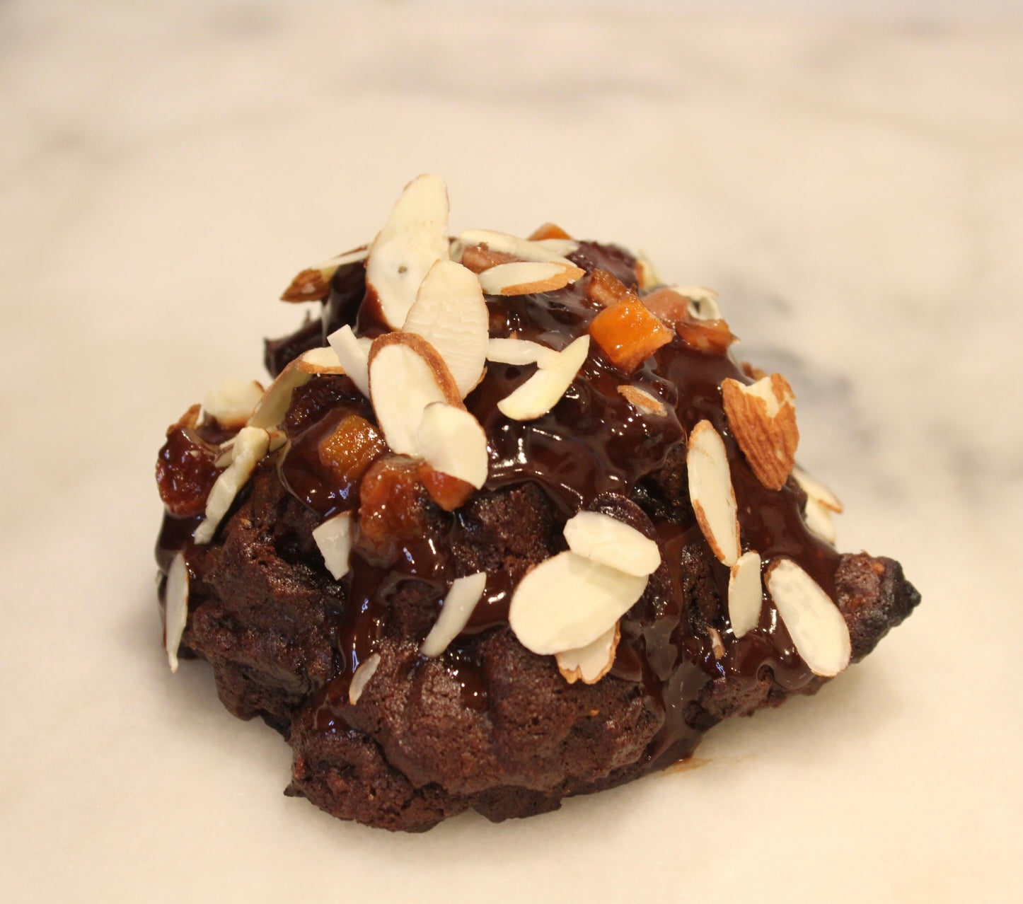 Galleta de chocolate, con frutas maceradas en ron y chispas de chocolate para los amantes del chocolate.